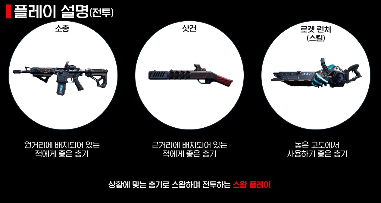 ‘SECOND WAR’는 전투에서 3가지의 총기를 기획하여 각각 원거리, 근거리, 높은 고도에서 사용하기 좋도록 용도를 구분하여 다양한 플레이를 유도했다는 점이 특징입니다.