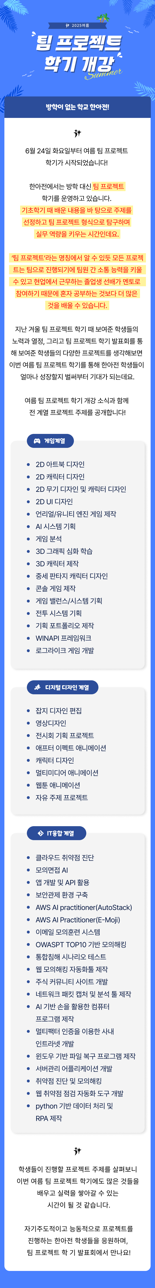 여름 팀 프로젝트 학기 개강 등록일 2025-07-09 조회수 5746