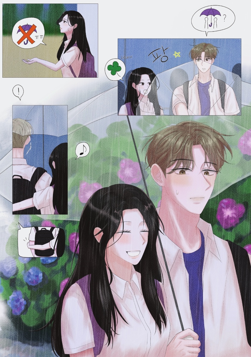 작품 설명 : 자신의 마음을 인정한 뒤로 상대방의 작은 행동 하나까지 의식하게 되는 모습을 비 내리는 여름날에 담아내었다.