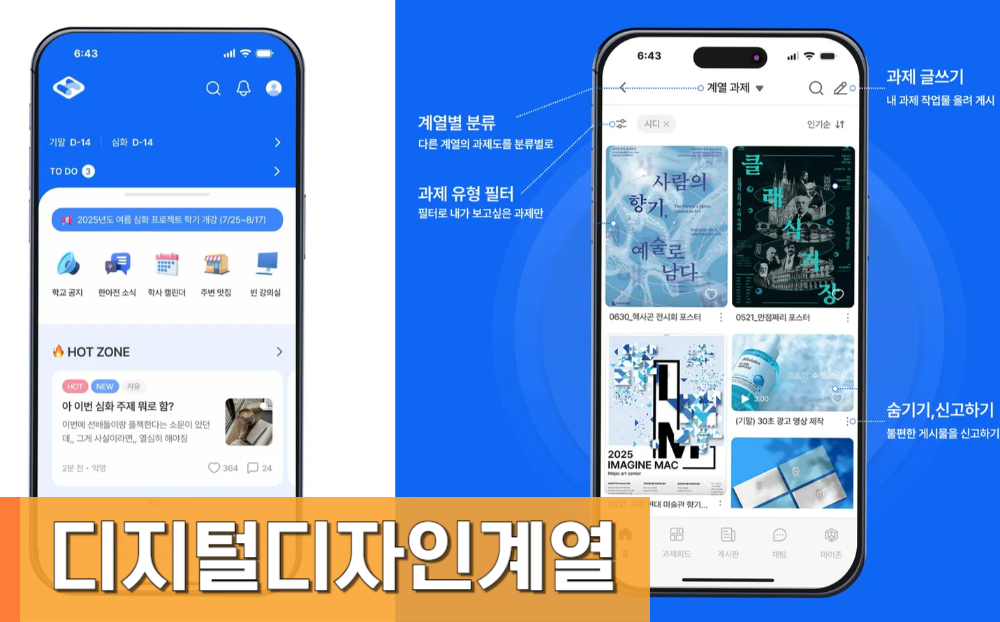 제10회 한아전 웹툰/일러스트/포스터/영상 공모전 결과 발표 2025-11-26 조회수 8896 한아전 겨울방학 진로캠프 신청 안내 2025-11-26 조회수 9100 재학생 대상 하이브 실무자 특강 현장 소식 2025-11-25 조회수 10104 디자인계열 재학생 인터뷰 영상 2025-11-19 조회수 5361 재학생 대상 하이브 실무자 특강 안내 2025-11-17 조회수 5682 2025-1 팀 프로젝트 최우수상 수상작 소개 2025-11-13 조회수 15422