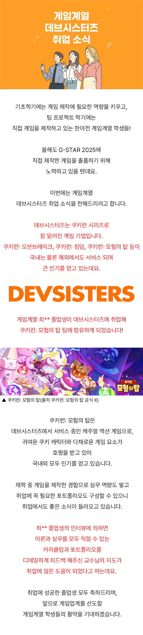 게임계열 데브시스터즈 취업 소식 등록일 2025-07-02 조회수 99797