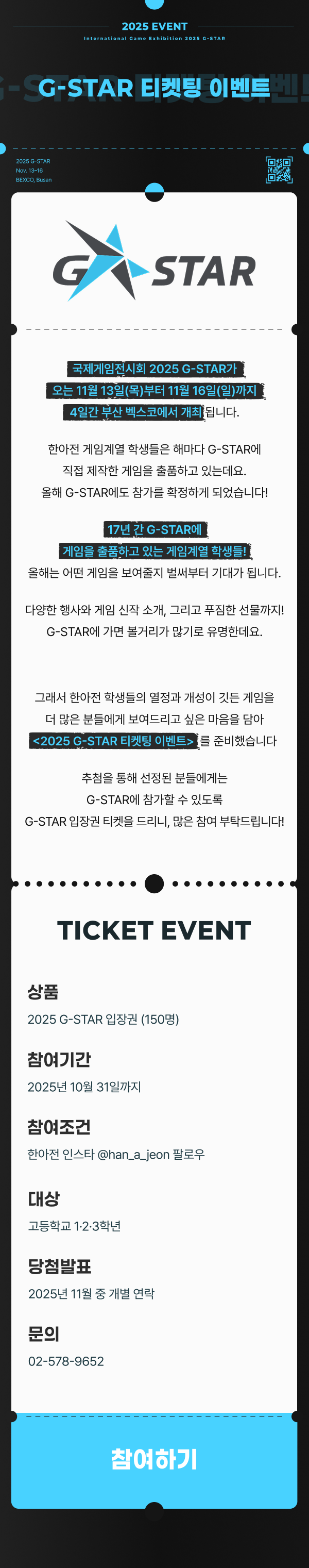 2025 G-STAR 티켓팅 이벤트 등록일 2025-06-27 조회수 98716