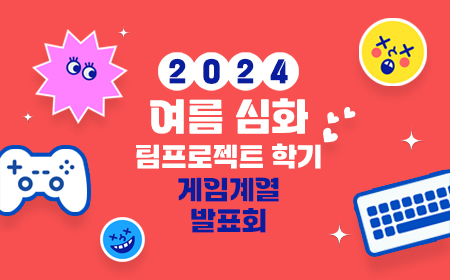 한아전 G-STAR 2024 심사회 2024-11-08 조회수 32058 2024 여름 심화 팀프로젝트 게임계열 발표회 영상 2024-09-27 조회수 546938 게임계열 웹젠 취업 인터뷰 2024-09-20 조회수 81471 2024 여름 심화 팀프로젝트 학기 시상식 2024-09-04 조회수 187538 2024 여름 심화 팀프로젝트 학기 게임계열 발표회 2024-09-03 조회수 73217 GIGDC2024 대학부 기획 은상 수상 2024-08-22 조회수 55640