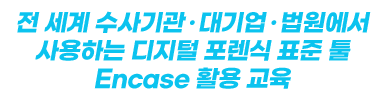 한아전 실제 수사와 법정에서 활용되는 디지털 증거 분석 도구인 EnCase를 활용해 삭제된 파일 복구, 침해사고 분석, 증거보고까지 실제 사이버 수사와 동일한 절차로 실습합니다.